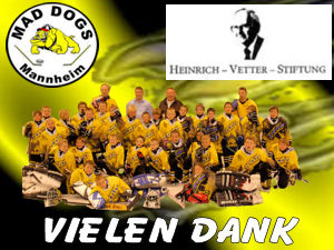 Die Maddogs Mannheim möchten sich auf diesem Weg bei Herrn Kolb und der Heinrich Vetter Stiftung für die Unterstützung zur Durchführung der Mini WM - Kids Cup 2008 bedanken.